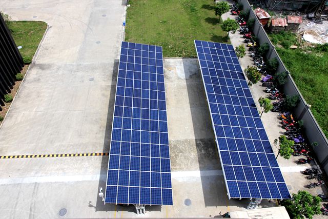 間接效益是——屋頂太陽(yáng)能發(fā)電板能有效的阻擋陽(yáng)光直射,降低頂樓的溫度達(dá)2攝氏度以上,降低了頂樓空調(diào)用電。預(yù)計(jì)在夏季每月可節(jié)約15000元的空調(diào)用電費(fèi)用。