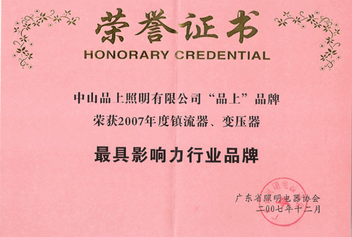 12月8日,在廣東照明電器協(xié)會成立15周年慶典上,品上品牌獲選“行業(yè)最具影響力鎮(zhèn)流器、變壓器品牌”。這是品上變壓器獲得“變壓器,用品上”的市場口碑后,品上鎮(zhèn)流器、變壓器再次雙雙得到行業(yè)專家評審委員會的認可。