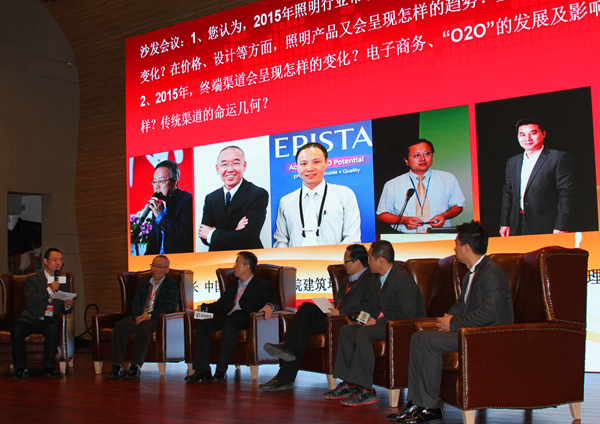 劉克鋒副總裁分別從:2015年照明行業(yè)市場大環(huán)境如何,LED技術(shù)會呈現(xiàn)怎樣的變化,在價格、設(shè)計等方面,照明產(chǎn)品又會呈現(xiàn)怎樣的趨勢,企業(yè)應(yīng)該如何面對,2015年,終端渠道會呈現(xiàn)怎樣的變化,電子商務(wù)、“O2O”的發(fā)展及影響力怎樣,傳統(tǒng)渠道的命運幾何?等方面引導(dǎo)五位嘉賓展開了熱烈討論。